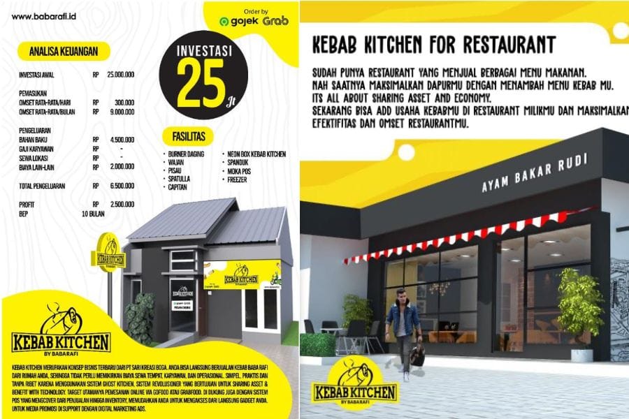 Tidak perlu khawatir pula soal modal franchise kebab Baba Rafi, karena ada banyak pilihan paket yang bisa Anda pilih. Mulai dari paket black booth, container kebab, container kebab cafe dan masih banyak lagi.