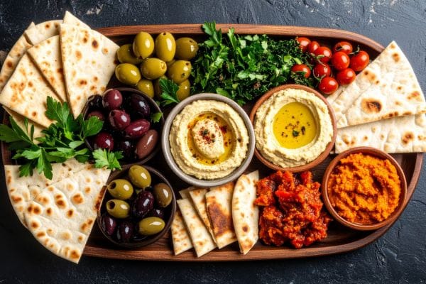 Menu seperti hummus, baba ghanoush, pita bread, sayuran panggang, serta skewers daging dan sayur bisa Anda susun di meja panjang untuk dinikmati bersama.